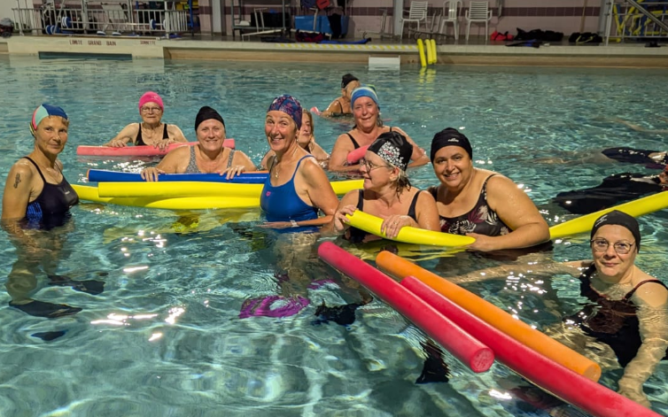 Le Fit’palmes est un concept général regroupant plusieurs activités physiques et artistiques, ayant chacune une approche technique particulière. L’activité est abordée en cours collectifs, elle se déroule principalement en piscine, mais elle peut aussi se pratiquer en plan d’eau ou mer calme. Le Fit’palmes est une nouvelle activité aquatique de maintien de la forme qui s’inscrit dans la discipline de la nage avec palmes. Mise au point par des spécialistes, elle permet de maintenir sa forme, d’affiner et de muscler sa silhouette tout en douceur. Nouvelle activité physique aquatique, le Fit’palmes peut répondre à tout ou partie des nouvelles motivations de ce nouveau public recherchant une activité physique de bien-être. LES PRINCIPES DE LA PRATIQUE DU FIT’PALMES : FAUT-IL SAVOIR NAGER POUR PRATIQUER ? Oui, il faut avoir au moins atteint un niveau d’autonomie permettant de parcourir environ 15 mètres en eau profonde, sans brassière et sans appui (définition du savoir nager en primaire pour l’éducation nationale). Il va de soit qu’il sera préférable de vérifier que notre future fit’palmeuse soit capable de s’immerger totalement en sautant en eau profonde et de se maintenir sur place au moins 10 secondes sans palme. QUEL EST LE PUBLIC CONCERNÉ ? La population concernée est en essentiellement féminine néanmoins elle se masculinise un peu. Cette discipline peut être pratiquée sans limite d’âge, car la pression de l’eau évite les chocs et minimise le risque de courbatures, de claquages ou d’élongations musculaires. Il n’y a pas lieu d’avoir une condition physique de haut niveau pour pratiquer cette activité ; par l’utilisation constante d’accessoires, de palmes et de supports, elle permet d’utiliser la piscine dans toutes ses dimensions et même aux endroits où il n’y a pas pied. C’est une activité sans risque, accessible à tous, car il n’y a pas de contrainte mécanique, l’eau crée un état d’apesanteur qui efface l’âge et le poids. QUELS SONT LES EXERCICES ? La méthode originelle, que nous avons mis au point, préconise que la majorité des exercices doivent être réalisés « palmes aux pieds » et peu de sauts pieds au sol pour éviter les longs chocs plantaires et des gonalgies. Il ne doit y avoir que très, très peu d’exercices « forts » pieds frappant le sol ou de type « step ». Des exercices simples avec ou sans charge additionnelle permettent de diversifier et d’individualiser la séance. Le niveau du cours peut être modulé en fonction de la taille des palmes utilisés. La séance regroupera aussi bien des exercices en longueur que d’autres sur place avec une réalisation statique ou dynamique qui se succèderont. La discipline se pratique essentiellement avec des palmes de toutes tailles que l’on portera aussi aux mains qu’aux pieds. Des accessoires extérieurs : planche, frite, donut, hand paddles, pull boy… pourront être utilisés. La méthode « Fit’palmes » met en œuvre la résistance de l’eau face aux mouvements. LES POINTS FORTS DE LA FIT’PALMES L’utilisation des palmes : Renforce des muscles qui généralement sont peu sollicités, tels que les jumeaux ou les ischios jambiers. Renforce les muscles superficiels et profonds de l’abdomen. Renforce les lombaires, les fessiers, les abdominaux, les abducteurs, les adducteurs, quadriceps ainsi que tous les muscles du corps. Permet d’avoir un bienfait contre l’ostéoporose et ceci bien plus que la natation sans palmes. Les programmes d’exercices individualisés incluant des exercices aérobies et de renforcement peuvent être bénéfiques pour certains patients souffrant de fibromyalgie. La Fit’palmes permet de : Affiner et garder une harmonisation du développement corporel en faisant travailler les membres supérieurs et /où les membres inférieurs. Développer également sa capacité respiratoire, sa force musculaire et son endurance musculaire par sa pratique en longueur ou avec un tuba frontal de différent diamètre. Renforcer psychique, physique, mental, et développe l’épanouissement corporel. Développer équilibre, agilité, et orientation. Acquérir une meilleure coordination, une meilleure faculté des capacités motrices, et une meilleure faculté espace temps. Le travail dans l’eau : Allège et réduit les efforts, les à-coups sur les articulations et les pressions exercées sur le dos. La pratique d’exercices en apnée : Permet d’améliorer son aisance respiratoire.